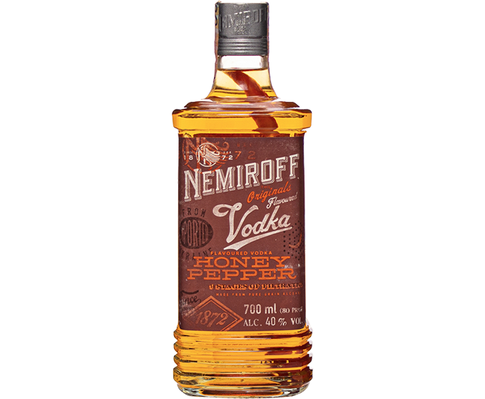 Ukrainian vodka Nemiroff Honey Pepper is made according to a 600-year-old recipe. It contains a balanced mixture of herbs, natural honey and spices. The spiciness contrasts favorably with the delicate honey accents, while from the first sip it creates an explosive wave of rich taste and leaves a delicate conclusion in the mouth. Only first-class raw materials are used in the production.